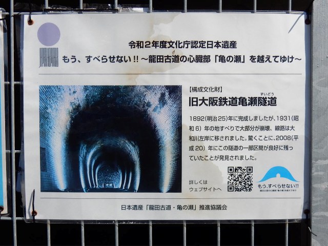 ともあれ発見された亀の瀬トンネルは一部が保存される事になり、