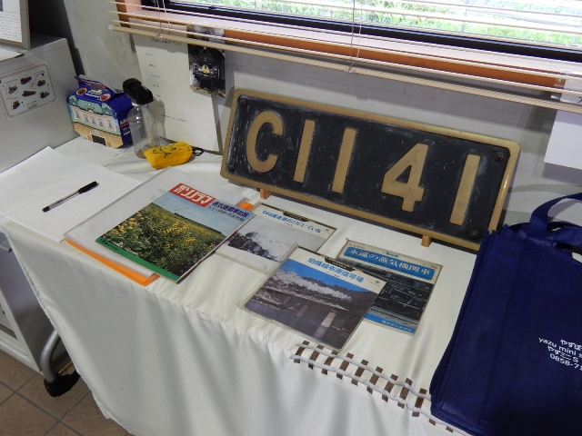 実物の機関車の物としては前照灯やナンバープレートなども展示