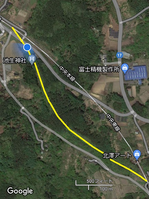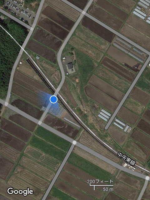 E353系が走る現在の線路から南東へ反れて、私の車がある位置