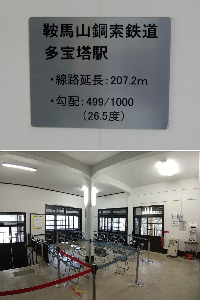 麓側の山門駅から高低差89mの多宝塔駅を約2分で結んでいます。