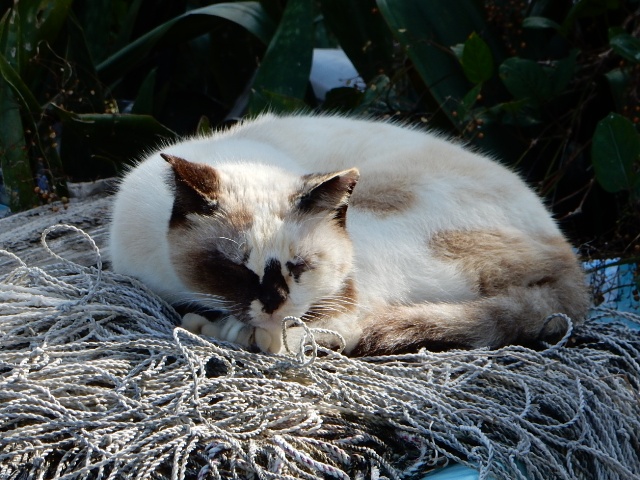 …ブチさんが昼寝してるのは漁に使う投網じゃないのかな?