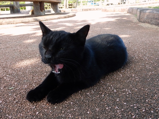 ヨシヨシ出来ました。…先程とは別個体の黒さん、豪快なアクビですね。