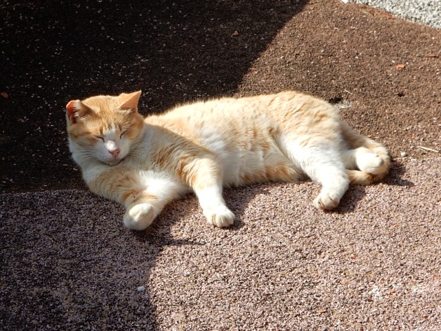 同じく公園内の猫たち。…顔だけ日陰に入れて器用に転がってますね。