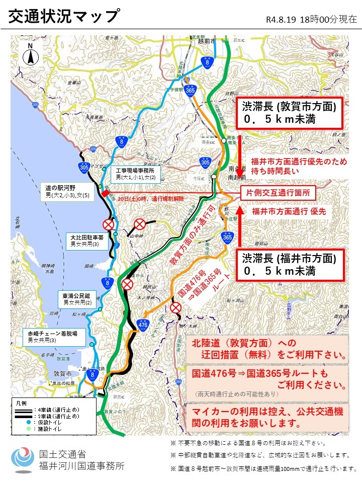 なっても北陸自動車道敦賀~今庄下り線通行止めのままで