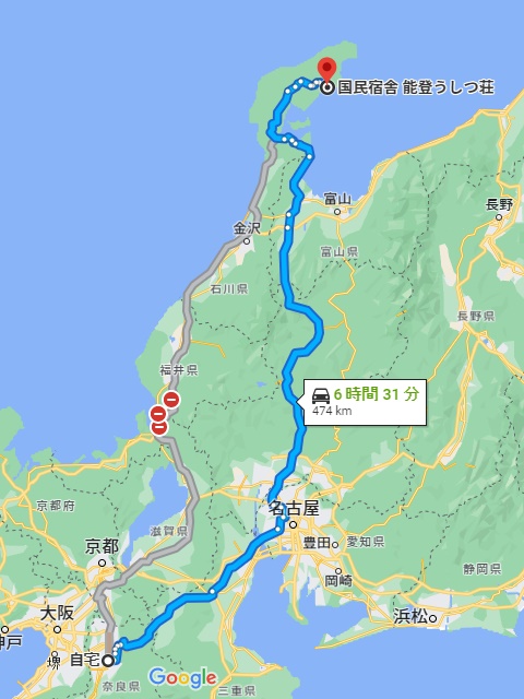 実家から能登半島の先端部へは、京滋バイパス北陸自動車道