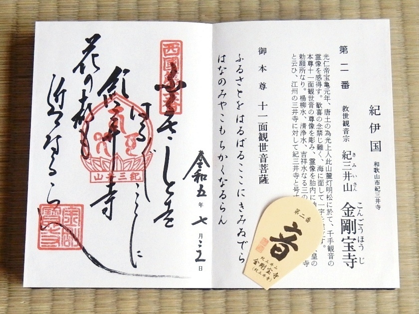 1番は和歌山県南部の那智山(青岸渡寺)で、紀三井寺は2番札所
