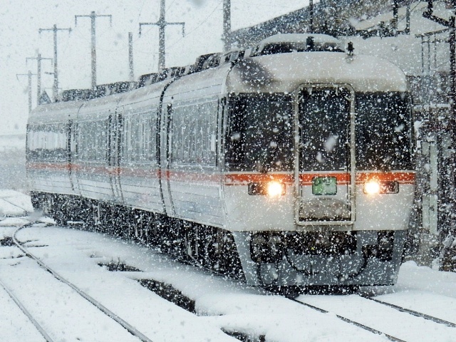 再び雪が激しく降り出したんですよ。キハ85系の後半の何枚かは