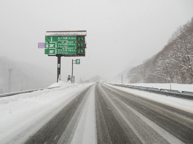 そんな感じで東海北陸道に入ったら、見事な吹雪になりました。