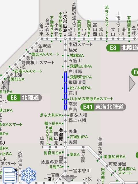 事に気が付きました。美濃白鳥から先で冬用タイヤ規制ですか。