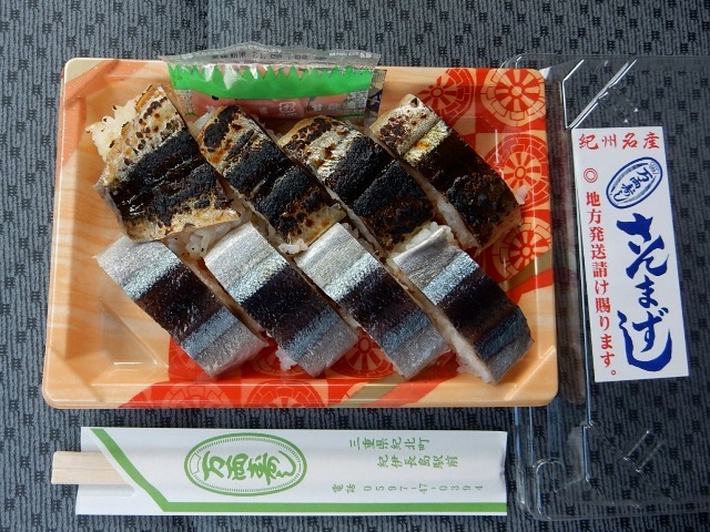 …紀伊長島の駅前にある「さんま寿司」のお店が開いてたんです。