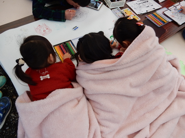 お絵描き会ブースの方は大海駅長の発案でフラットな空間にしたので、