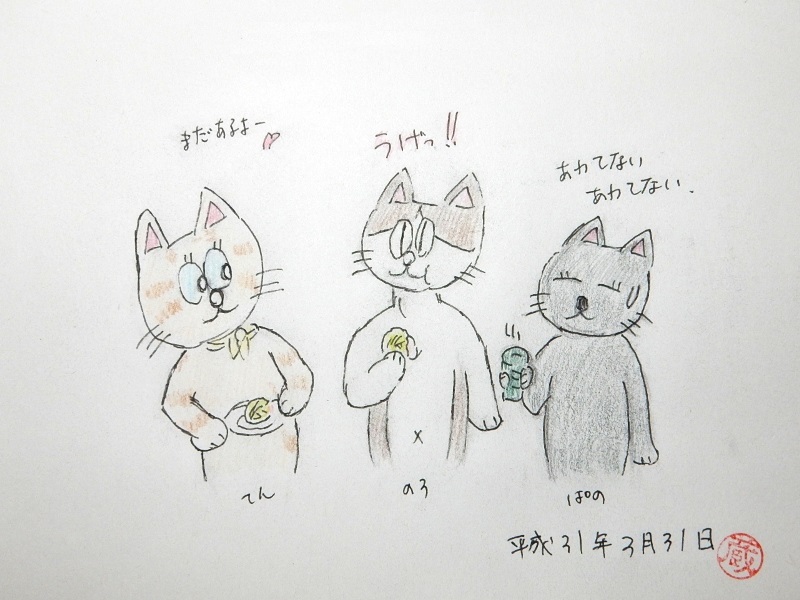 描けた絵は簡単なのが一点だけでしたが「さくらまつり」なので桜餅。