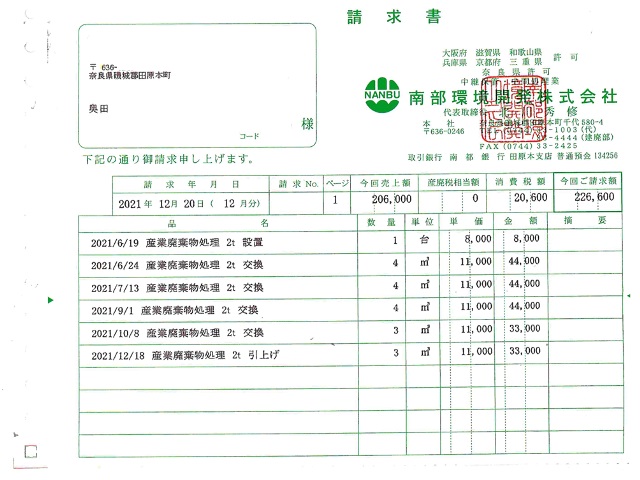 業者さんにココまでの請求書を出して貰いました。