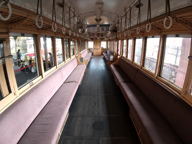 戦前の車両なので床や窓枠が木製ですね。時代的な事を考えると