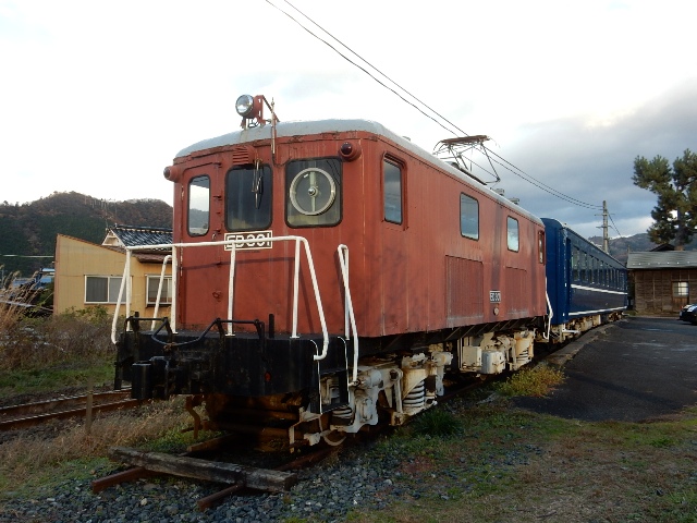 同駅には元の貨物引込線(と思われる部分)に古い電気機関車と