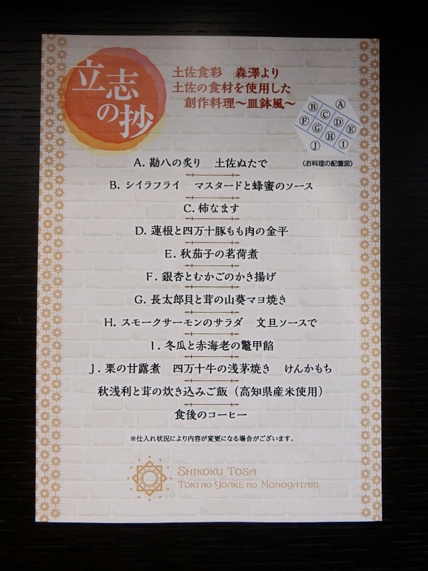 高知の伝統的な宴会料理である皿鉢料理をイメージしてあるそうな。