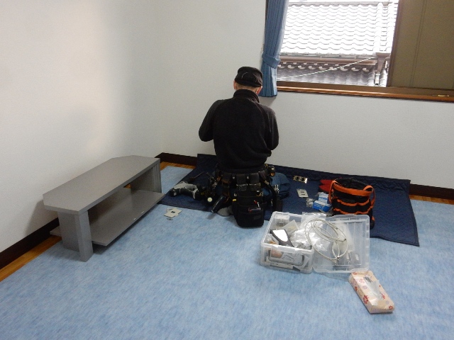 2間ある洋室のアンテナとエアコンの工事を続けて行いました。