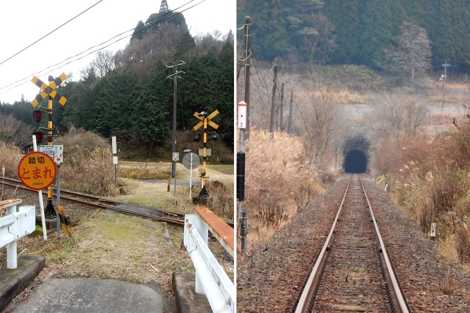 平地に降りて暫く行くと、道路と交差する踏切からトンネルの入口