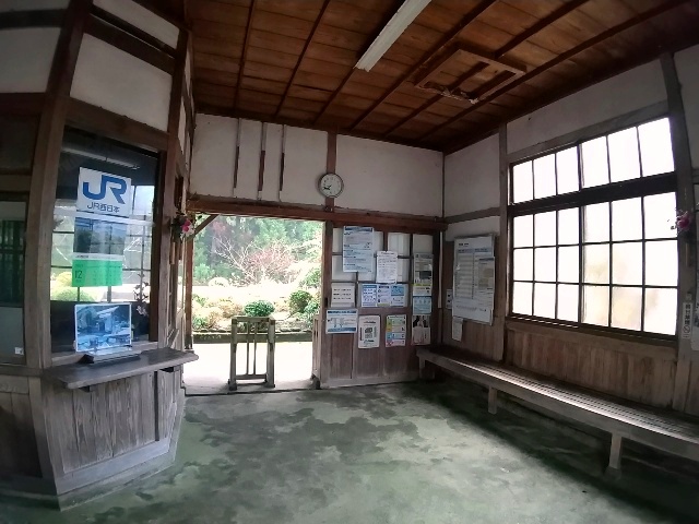 駅は無人化されてますが、元の駅務室は内部が見通せる状況で