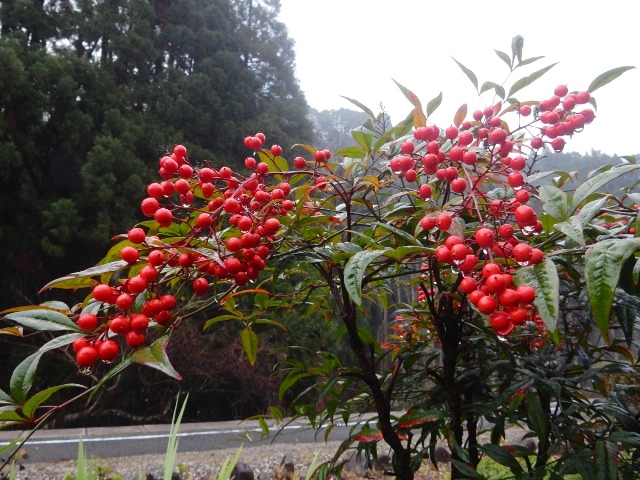成ってる南天の実がキレイだったので、コレを入れて描きましょう。