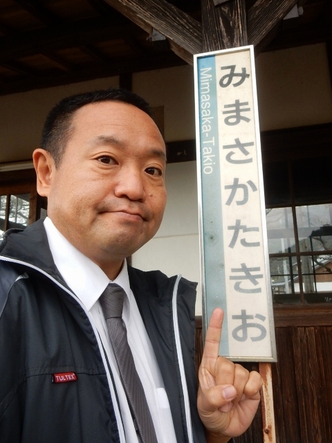 津山方向へ戻った美作滝尾にやって来ましたクラ駅長です。