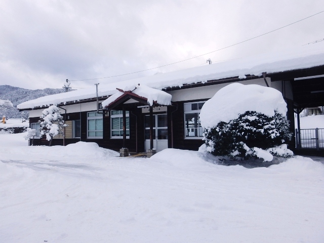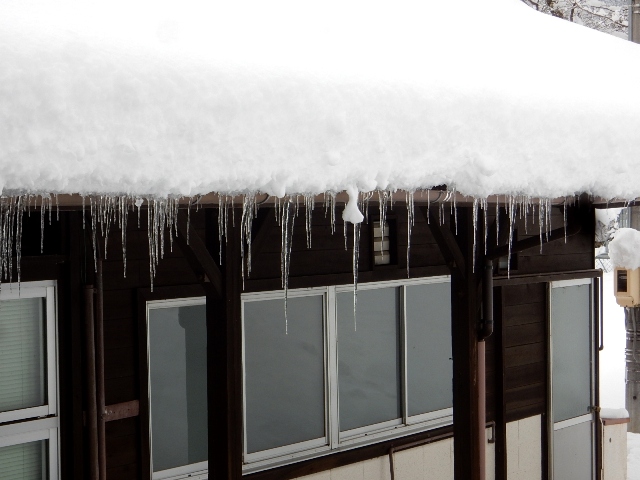 があったようで、駅舎の屋根も厚い雪が乗ってます。そしてツララも
