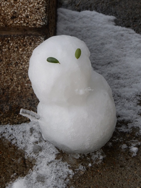 駅の入口に、高さ15cm程度の小さな雪だるまがありました。