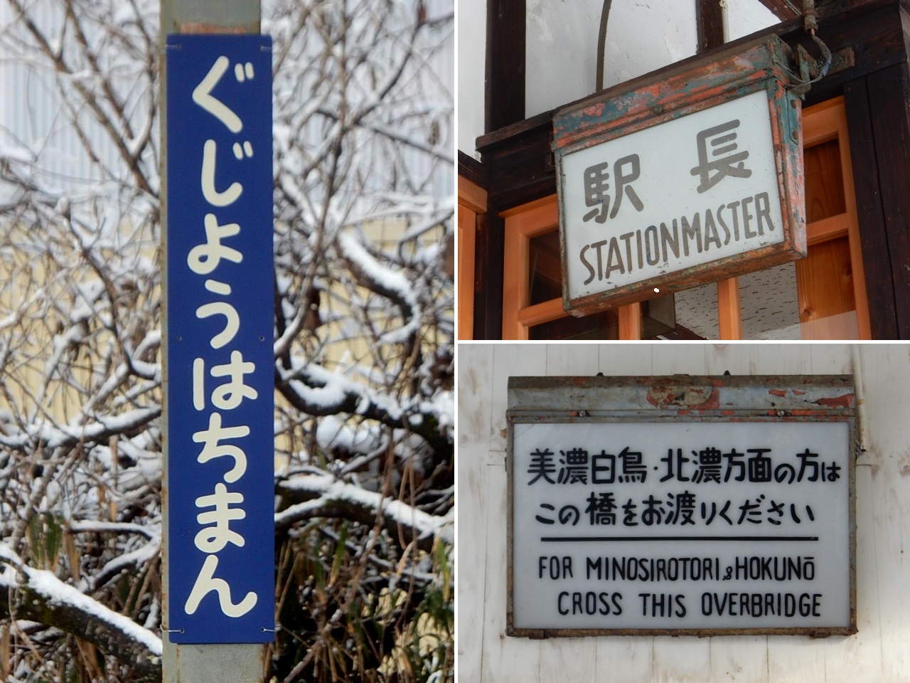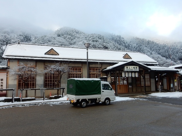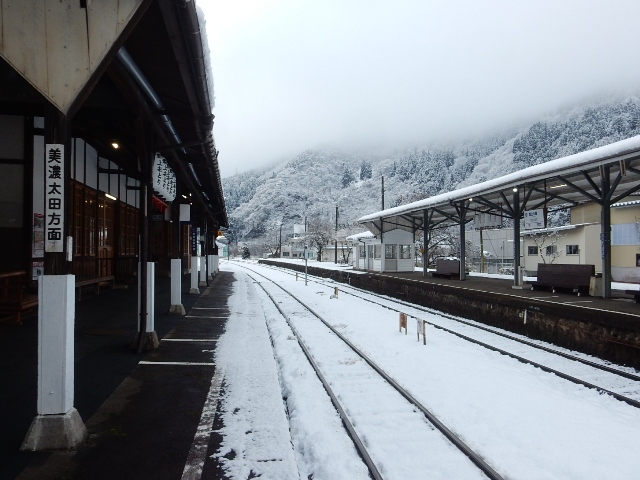 駅の背後はすぐ長良川を挟んで山になっており、雪景色がキレイ
