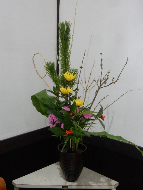 …地元の活け花教室の方の手による物でしょう。時々ありますね。
