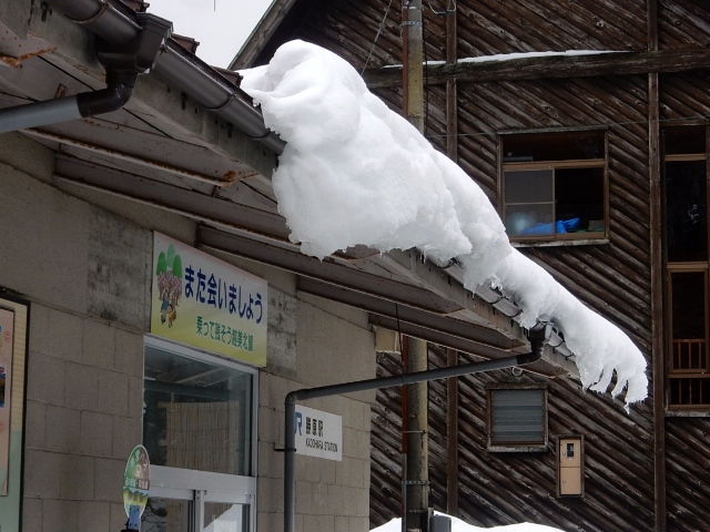 駅舎の雪下ろしに誰も来ないのか中途半端に溶けた雪が軒先から