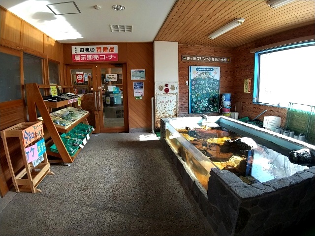 1階のエントランスには円筒形の水槽があり鯛や鰤などが泳いで