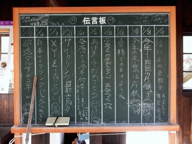駅舎内に入ってみると、黒板形式の伝言板が新しく置かれてました。