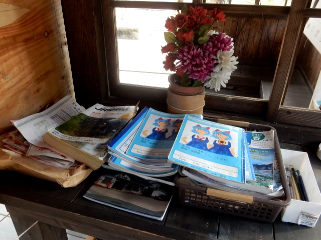 駅ノートは元の出札窓口と思われる所に、古い鉄道関係の雑誌など