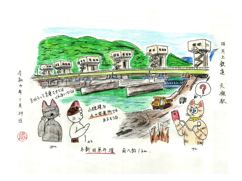 事にしました。…線路跡と平行して流れる吉井川にある新田原井堰