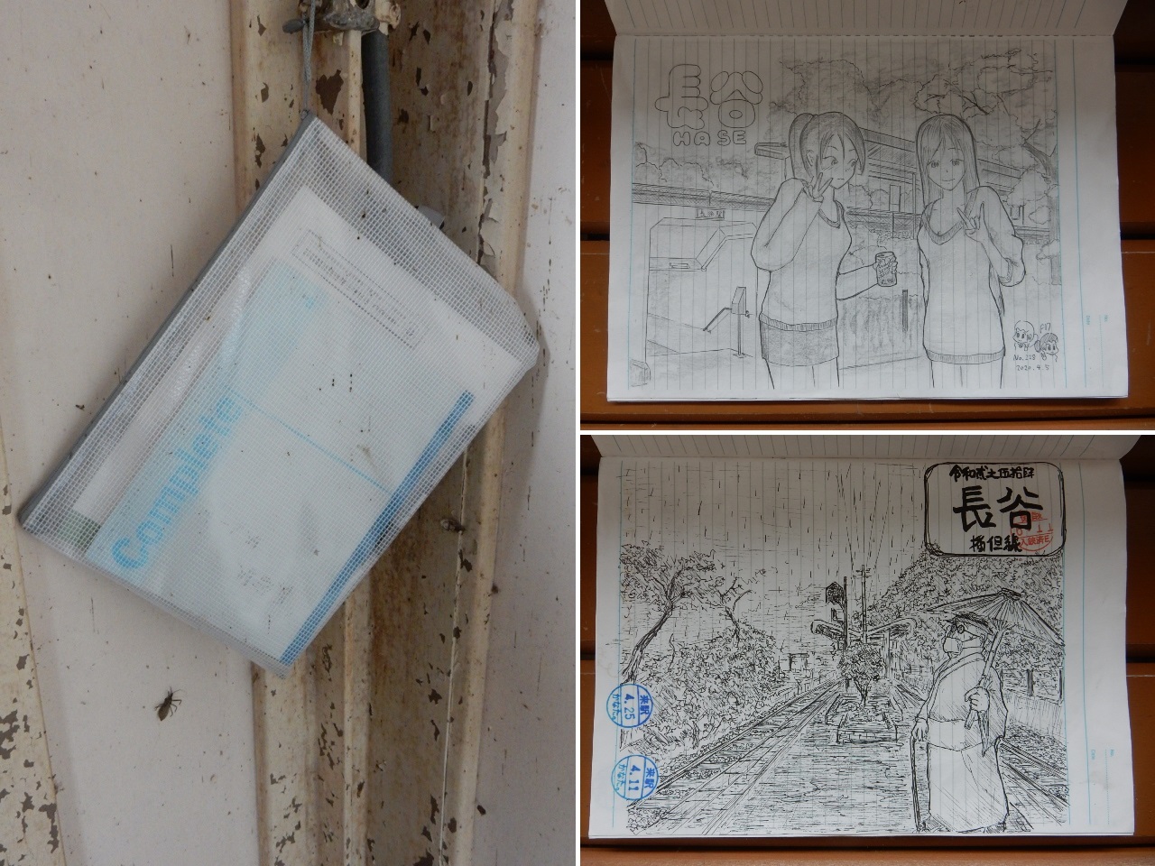 ホームの中央に待合室があり、駅ノートはココに置かれてました。