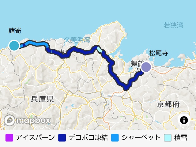 …今回も天気予報アプリで道路状況をチェックしてみますと、