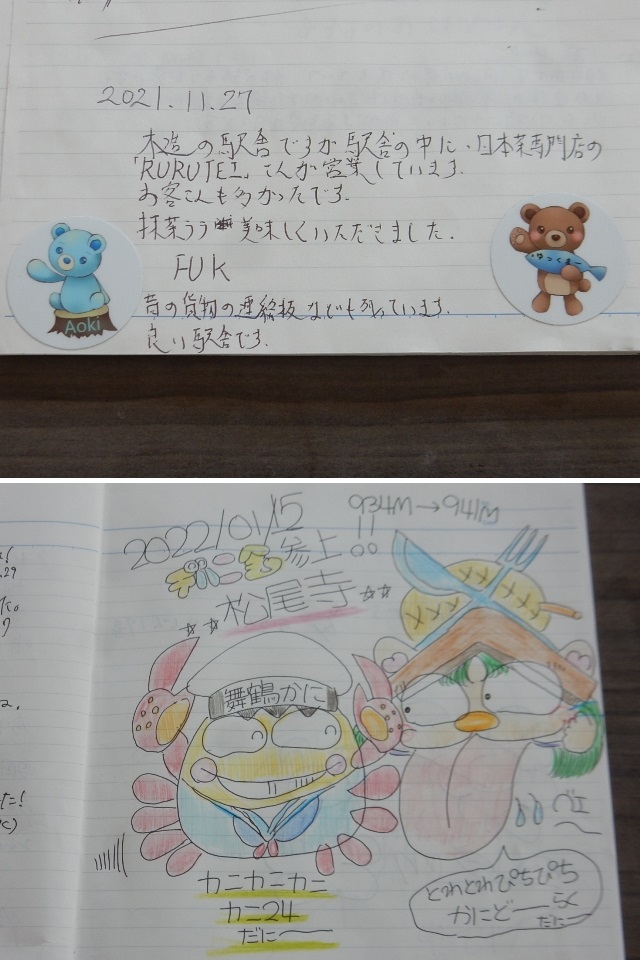 を見に行き、小浜線の松尾寺の駅ノートに掛かりますクラ駅長です。