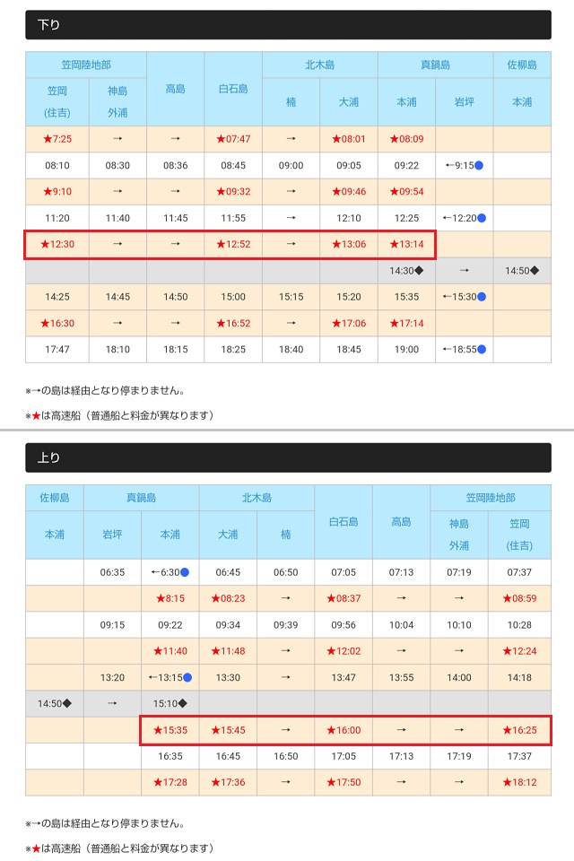 から、時間帯によって乗る船が決まってしまうワケですが。