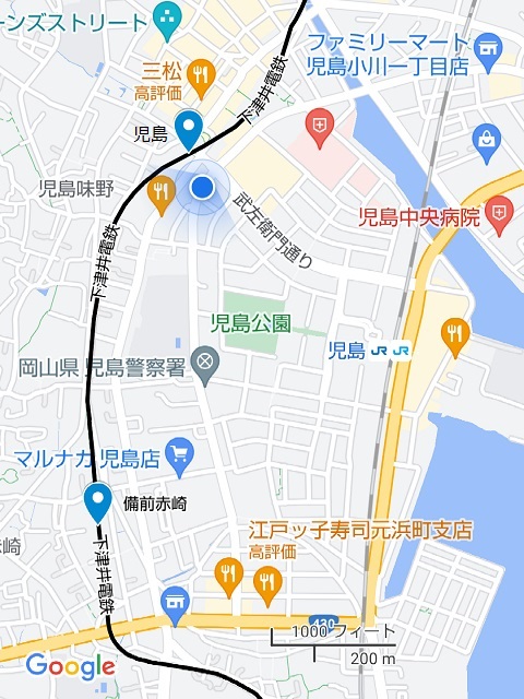 元は下津井電鉄の児島駅周辺が町の中心地だったと思われます。