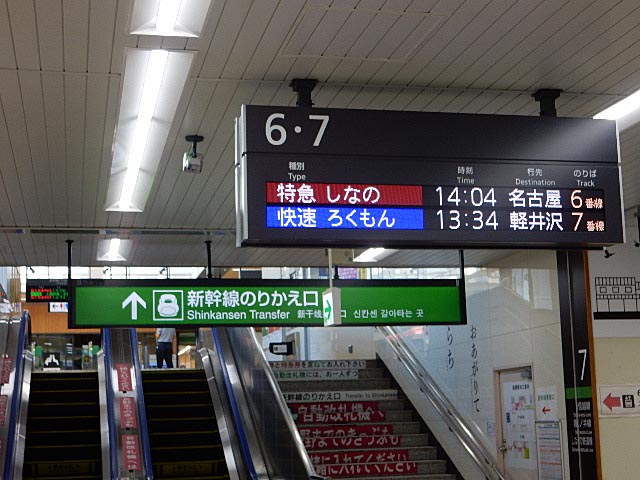 名古屋行きの特急「しなの」と並んだ電光表示が何となく誇らしげに