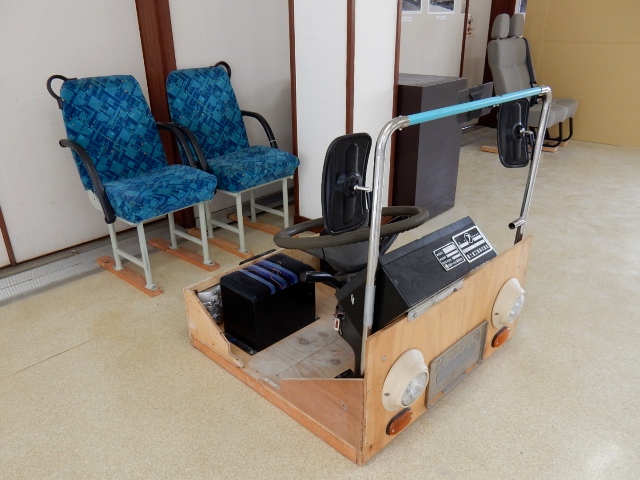 …ハンドメイド感溢れる電車やバスの運転席がありました。