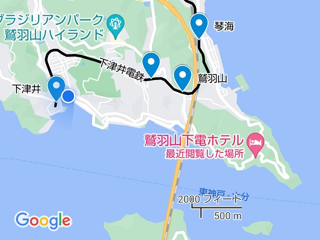 …位置関係は左の地図の通りですね。児島~下津井を循環する