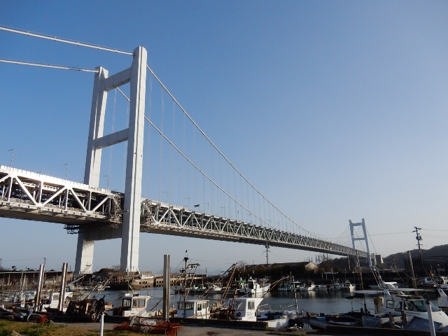 途中で通る田ノ浦漁港は瀬戸大橋の真下にあり、巨大な橋を背景