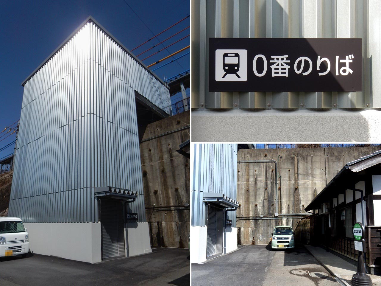 駅舎の外に0番線乗り場に通じる外階段が完成しており、ホーム