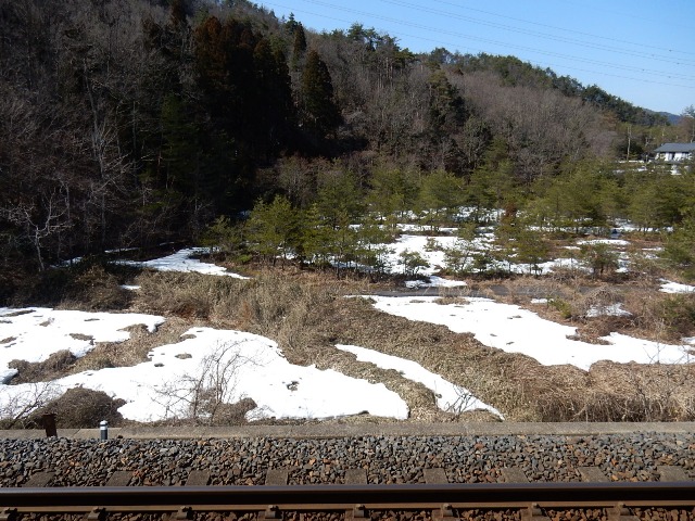 3月の半ばですが駅の北側は陽当たりが悪いようで、まだ所々に