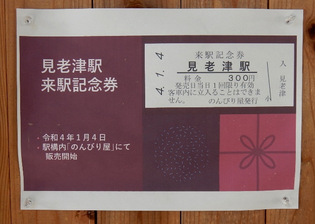 併せて「見老津駅 来駅記念券」と言う物の発売が開始された旨が