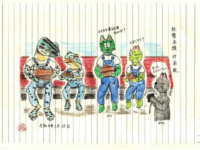 那智・見老津と描いた当日は田辺市に宿泊しましたクラ駅長です。