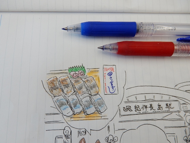 では紀伊長島の駅ノートのメイキングの続きです。下描きが出来た
