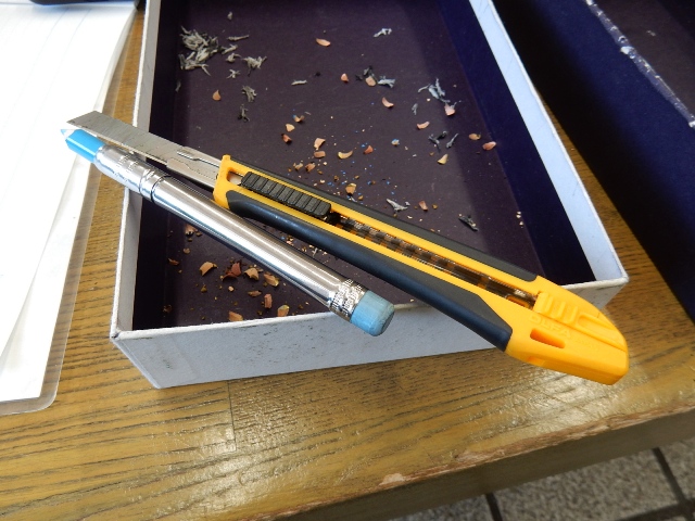 何故か芯が折れまくるのでカッターナイフになりました。