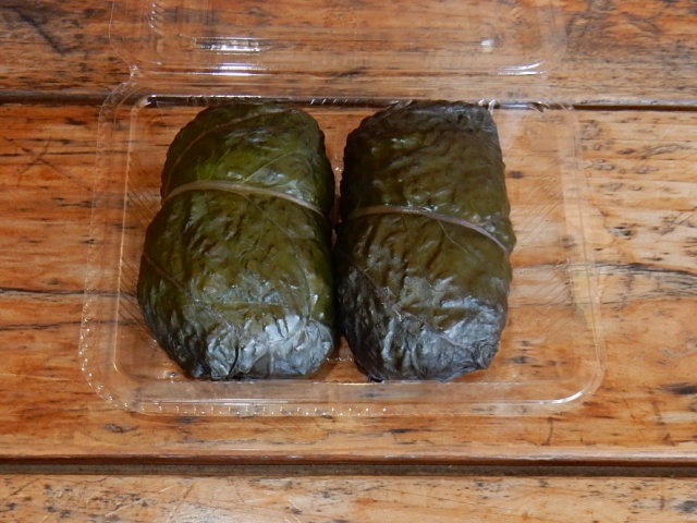…コレも御当地名物の食べ物で、ゆかり御飯の寿司飯を高菜の葉